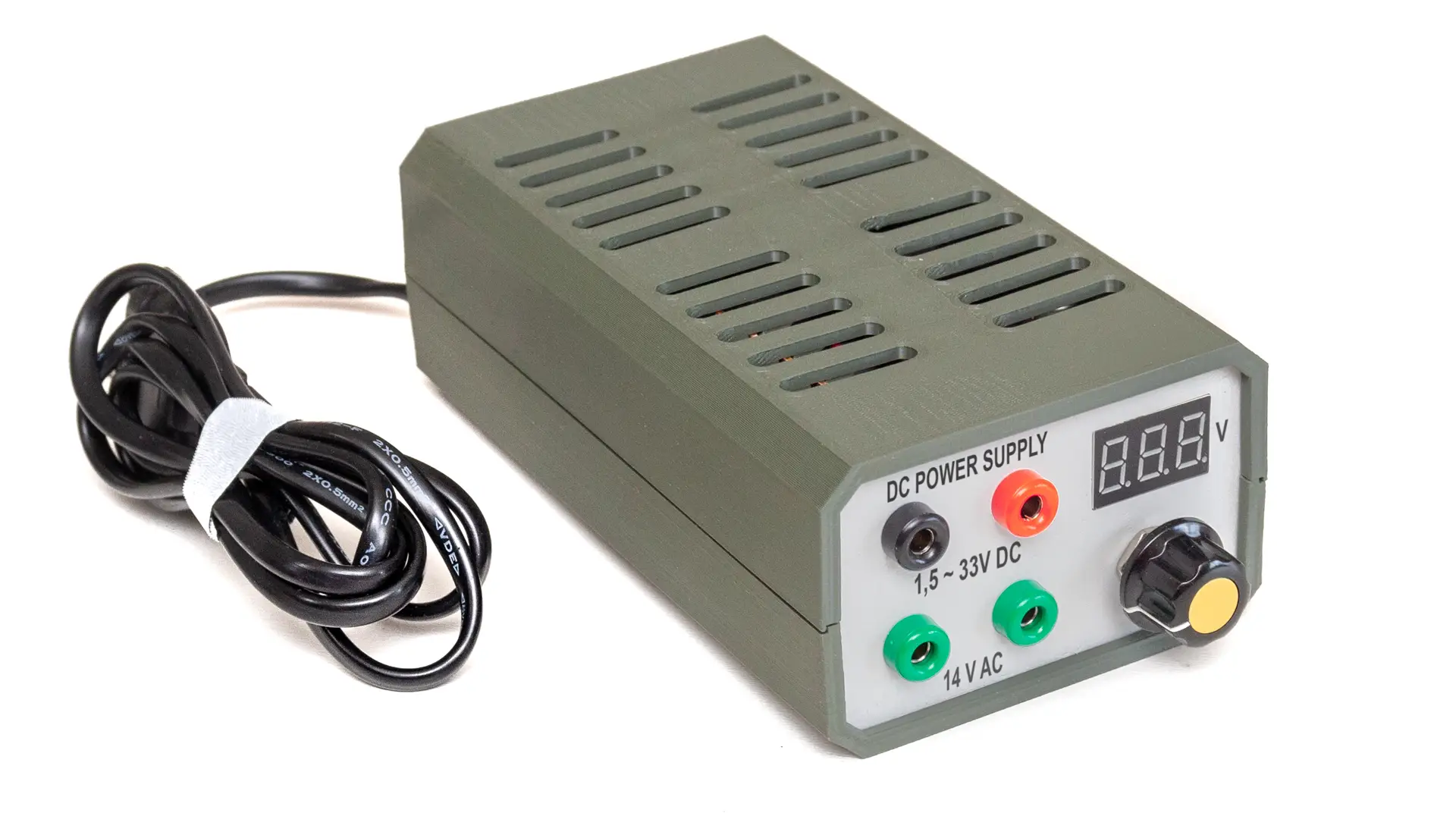 I needed a compact power supply capable of providing roughly 5–20 V DC and 12–16 V AC. Because an AC output was required, I chose a conventional transformer—similar to those used in alarm control units and intercom systems. This project was inspired by the Chordless Lab Power Supply on Thingiverse.