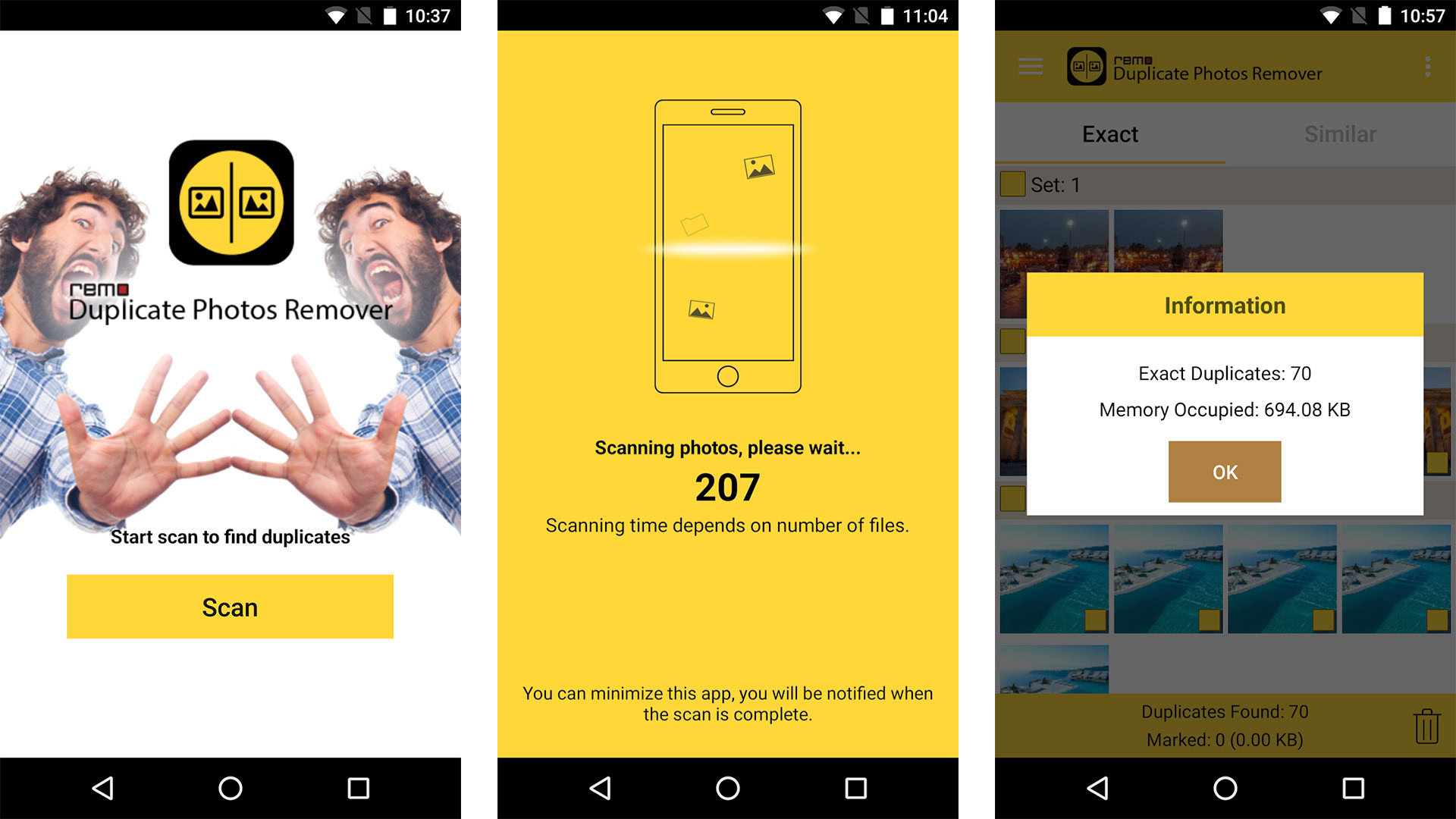 This is when the Remo Duplicate Photos Remover app comes in handy, designed precisely to solve this problem. The app can scan your phone’s memory and SD card photos, then automatically detect and filter out duplicates. It offers two types of scans: one based on exact matches, and another based on similarity. In the latter case, it doesn’t rely only on file names or file sizes, but uses AI-driven algorithms to analyze the image content itself. This is important because duplicates are often not exact copies: the same photo may exist in a slightly different size, compression, or with minimal edits. Remo’s algorithm can recognize these too, bringing real order to your gallery.