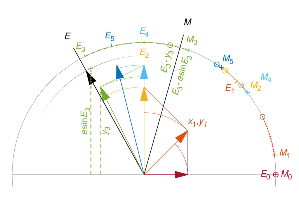 Modern calculators generally don’t use tables or Taylor series (though some do in special cases). Instead, they employ a clever iterative algorithm called CORDIC (COordinate Rotation DIgital Computer). This method repeatedly rotates a vector in the plane in small steps until the desired value is reached. Each rotation involves multiplying by a 2×2 matrix, which in binary can be implemented with simple shifts and additions—no real multiplication needed, and no hardware multiplier in the chip.