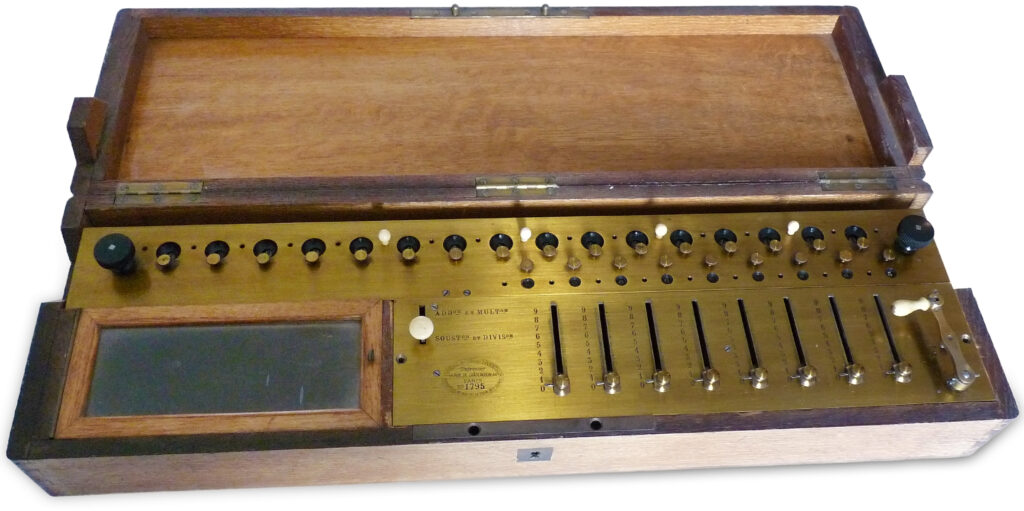 Accuracy was still only about three digits—fine for engineers, not for bookkeepers, who didn’t care about tangents but needed lots of additions and subtractions to 8–12 digits. The first truly useful adding machine was built by Blaise Pascal in 1642. Six- and eight-digit versions were made, and about fifty survive. Building on this, French inventor Charles Xavier Thomas de Colmar created the Arithmomètre in 1820, capable of all four operations. About 5,500 units were made between 1850 and 1915, priced at 300 francs (which today might correspond to €3,500–€7,000). WWI ended its production, and postwar labor shortages prevented restarting. Copies were made into the 1940s in the U.S., among others. You can admire the original and try a virtual model at Arithmometre.org. Mechanical calculators thrived from the 1890s until WWII, though they were made into the 1970s. Some Hungarian offices still had working units after the regime change; clever people could grab beautiful specimens.