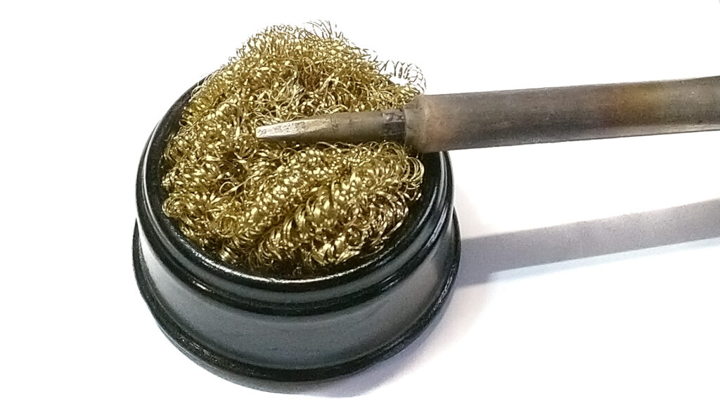Scrubbing should be done gently — there’s no need to press the brush down hard! The goal is not to remove the iron coating, only the oxide layer. You can brush the tip either cold or hot — some people swear by cleaning it while hot, but in my opinion, it doesn’t really matter.