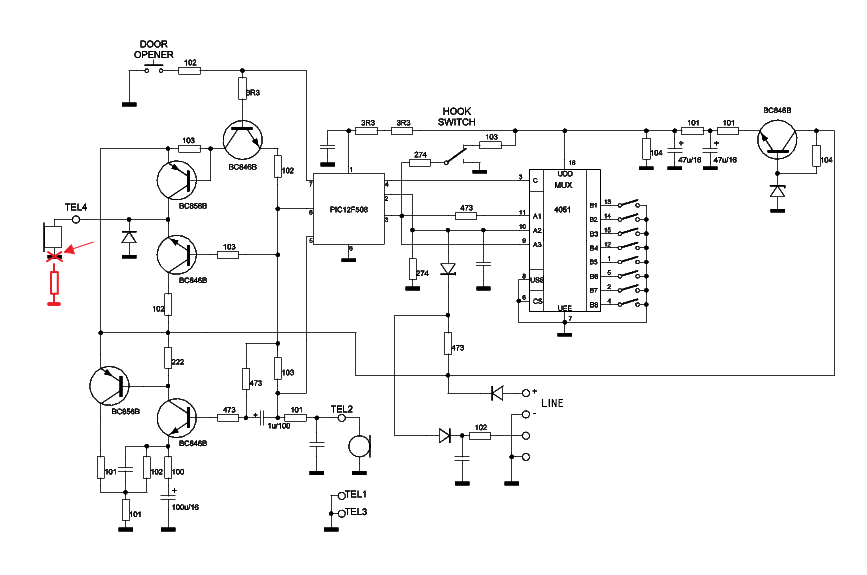 The ringing signal originates from the PIC12F508 microcontroller and is fed to the loudspeaker located in the handset. The sound level of the speaker can be significantly reduced by simply wiring a 1.0…1.5 kΩ resistor in series with it, at the point indicated on the circuit diagram. However, the ideal solution would be to reduce only the beeping and whistling tones, without attenuating the speech audio. It would also be useful if the attenuation could be switched on and off.