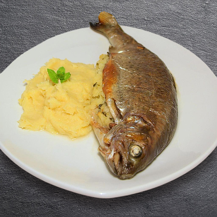 Stuffed trout with parsnip purée